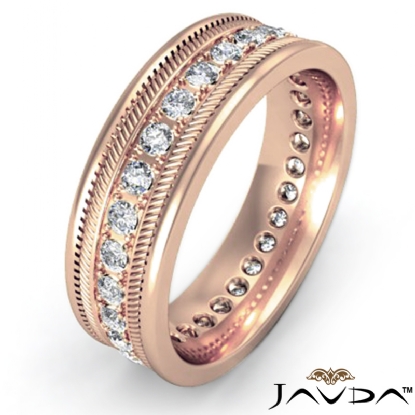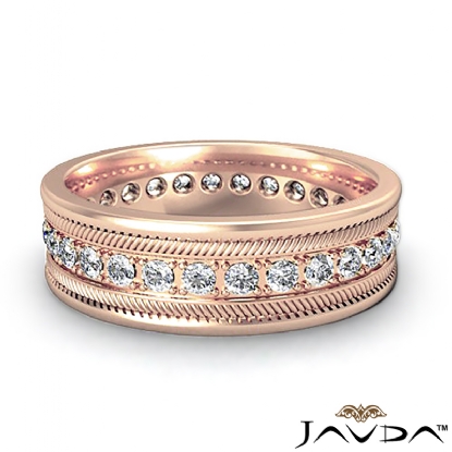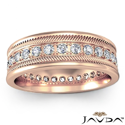 Pave Set Round Edge Diamond Eternity Men's Wedding Band 14k Rose Gold (0.65Ct. tw.)