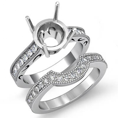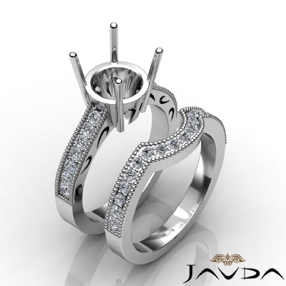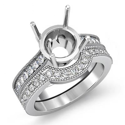 Diamond Engagement Millgrain Setting Ring Round Bridal Set Platinum (0.6Ct. tw.)