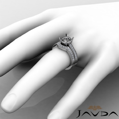 Fit for a princess! This semi mount diamond engagement ring has round pave diamonds on the shank with milgrain on each side. This Platinum 950 bridal set comes with an equally stunning matching band. (0.6Ct. tw.)