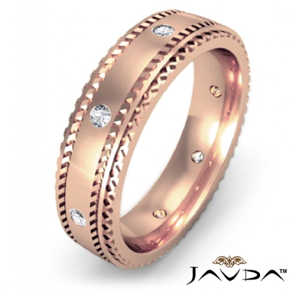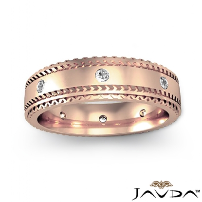 Carved Step Edge Men's Diamond Eternity Wedding Band in 14k Rose Gold (0.15Ct. tw.)