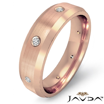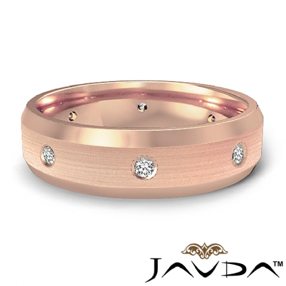 Bevel Edge Brushed Diamond Eternity Men's Wedding Band 14k Rose Gold (0.15Ct. tw.)