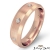 A classic style solid 14k Rose Gold brushed finished diamond eternity men's wedding band. Featuring beveled edge with total round diamonds in a bezel setting.