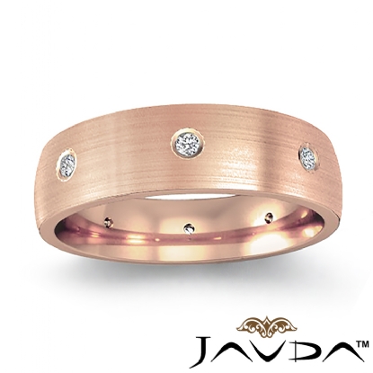 Low Dome Matte Finish Men's Diamond Eternity Wedding Band 14k Rose Gold (0.1Ct. tw.)