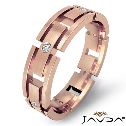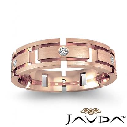 Link Bezel Set Diamond Men's Eternity Matte Wedding Band 14k Rose Gold (0.15Ct. tw.)