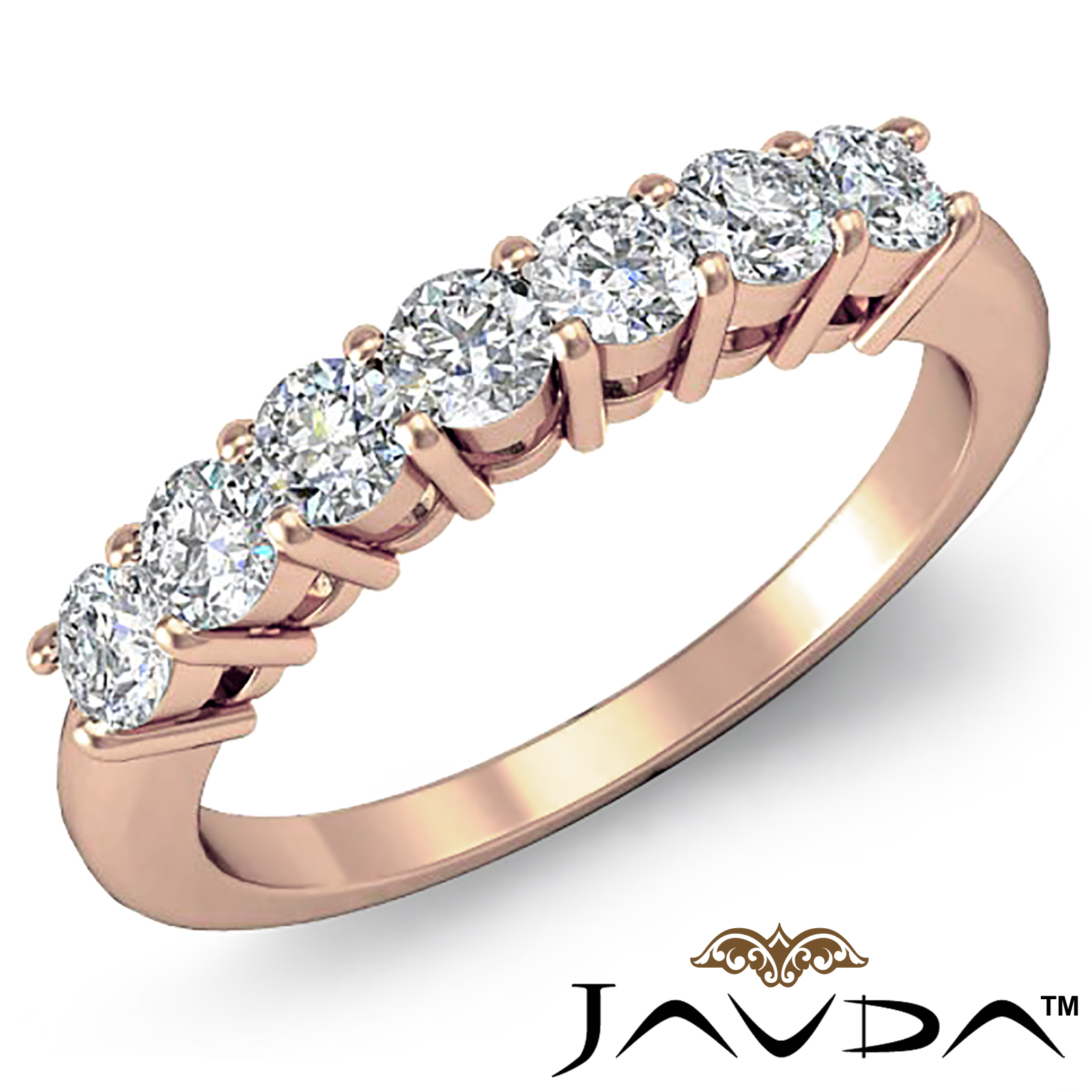 7 Stones Round Cut Diamond Women's Half Diamond Wedding Band Ring made in 14k Rose Gold. (0.7Ct. tw.)