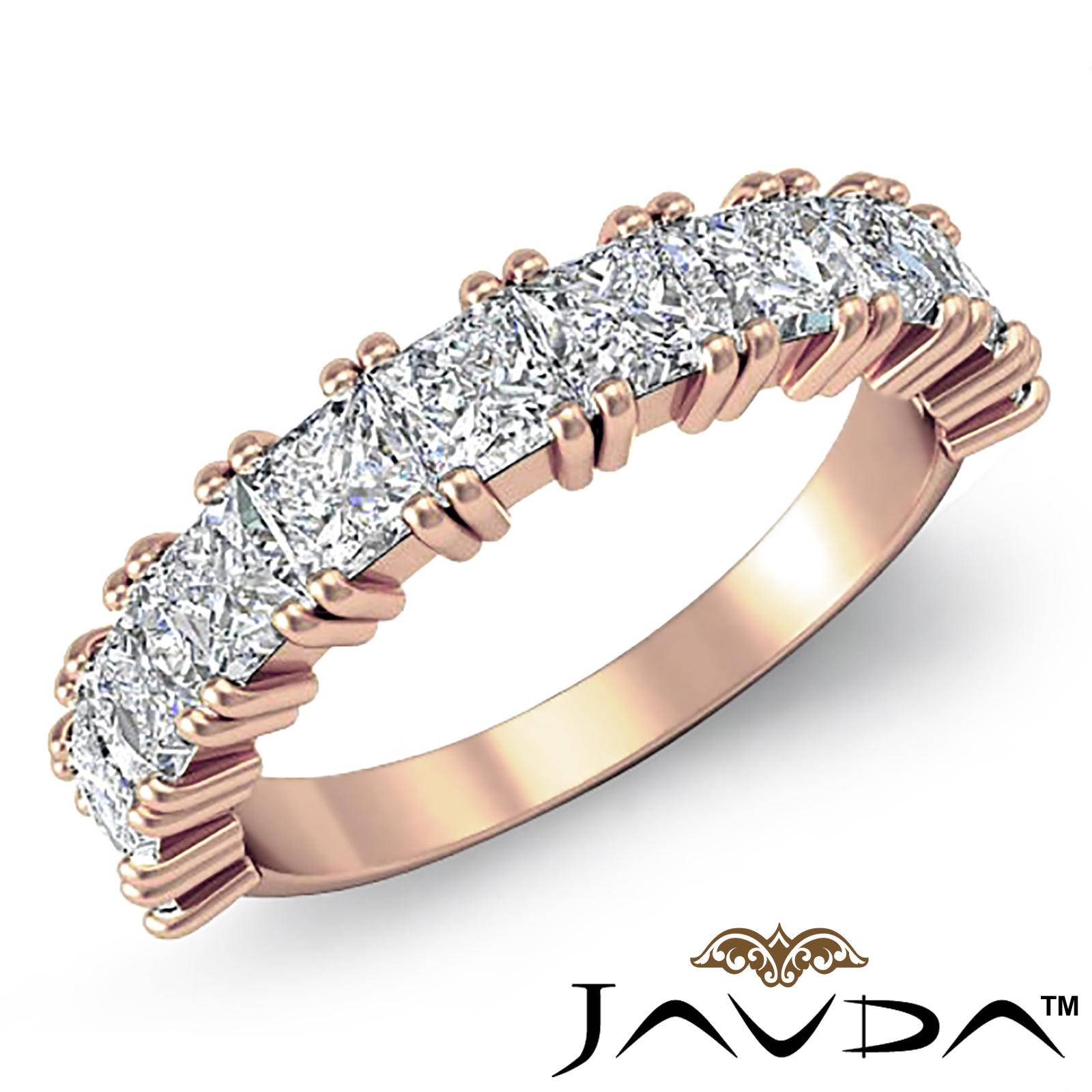 Duet Prong Princess Diamond 11 Stone Women's Half Wedding Band Ring made in 14k Rose Gold. (2Ct. tw.)