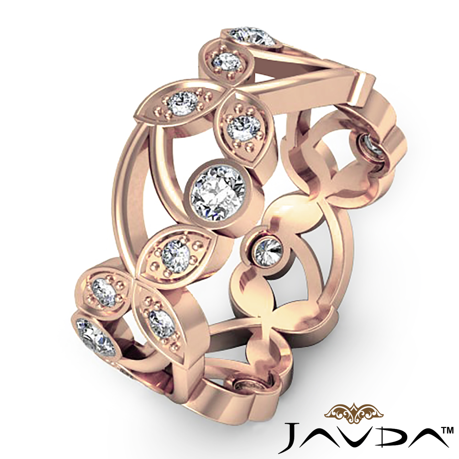 Floral Womens Eternity Round Diamond Wedding Band 14k Rose Gold (0.9Ct. tw.)