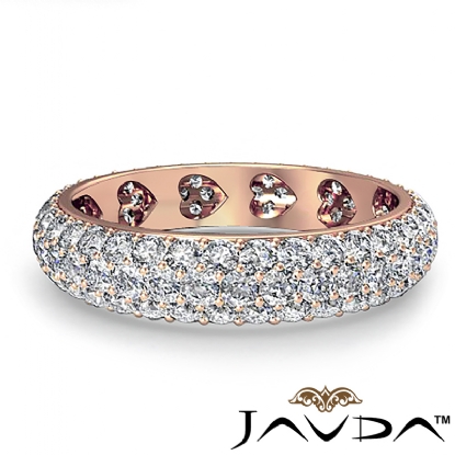 3 Row Women's Eternity Wedding Band 14k Rose Gold Round Diamond Pave Ring (1.5Ct. tw.)
