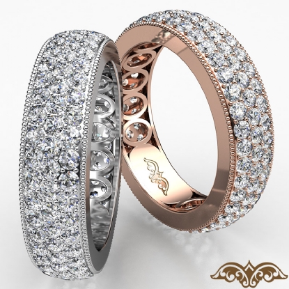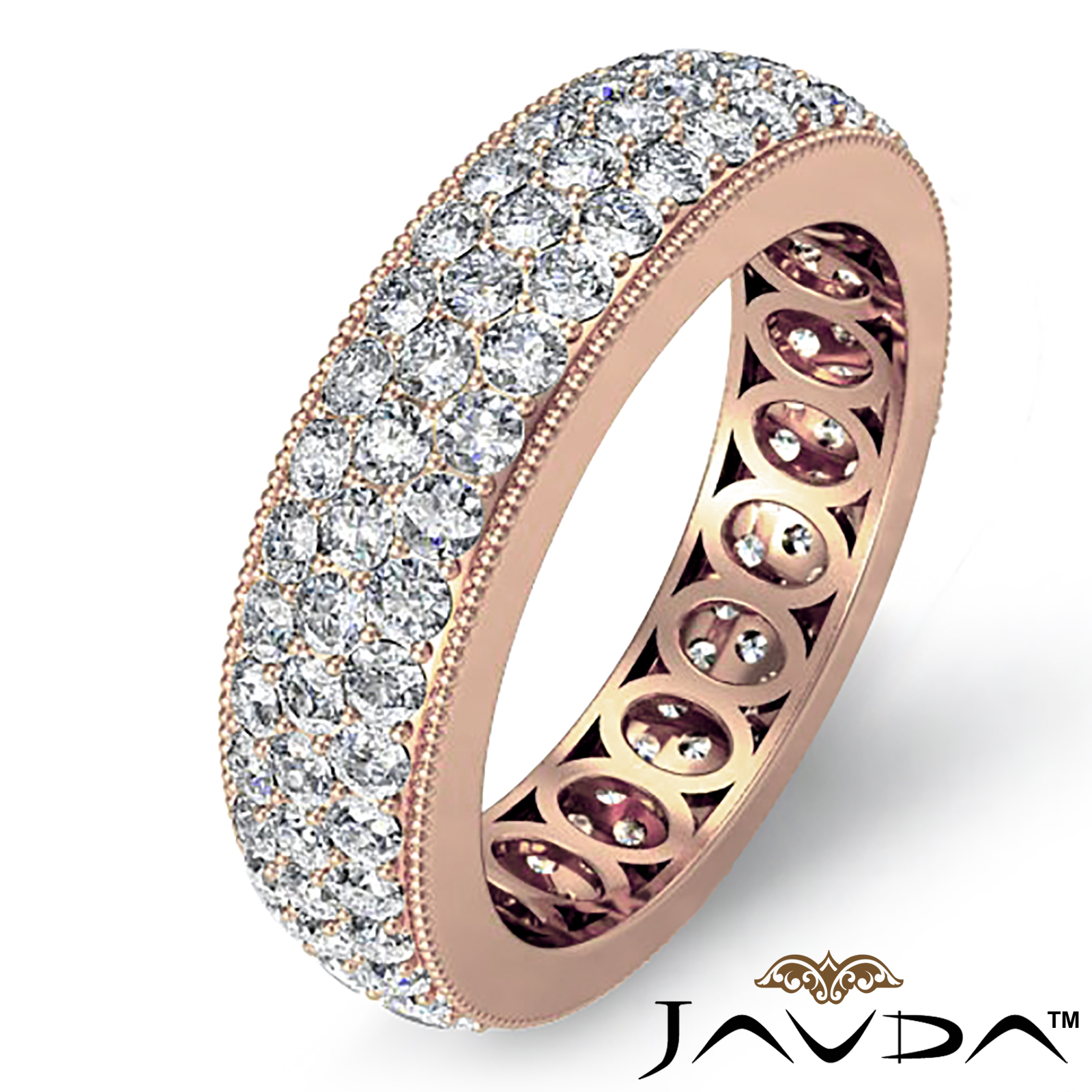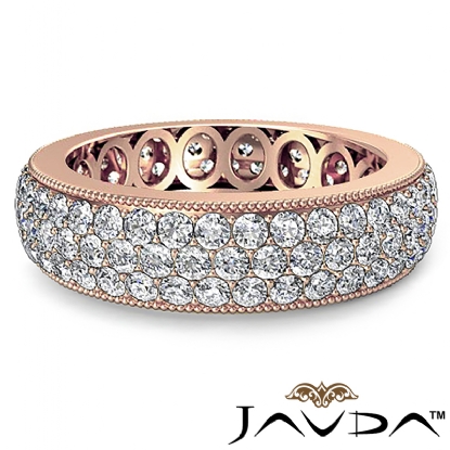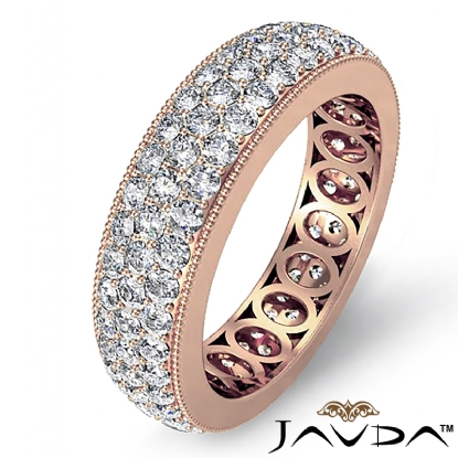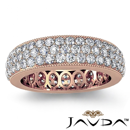 3 Row Pave Set Round Diamond Women's Wedding Eternity Band 14k Rose Gold (2.1Ct. tw.)