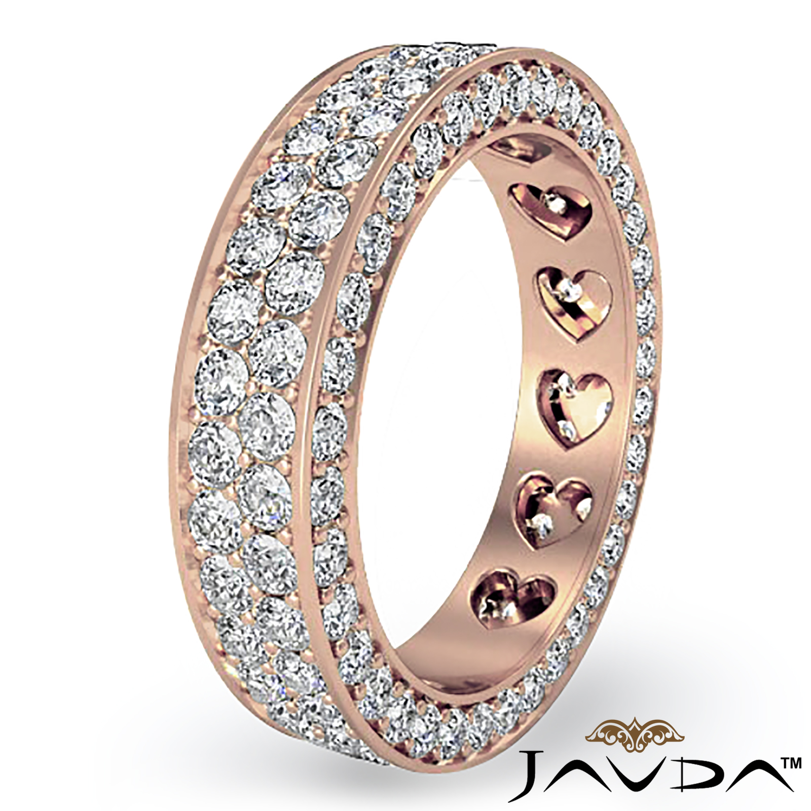 2 Row Women's Wedding Band Pave Diamond Heart Eternity 14k Rose Gold Ring (2Ct. tw.)