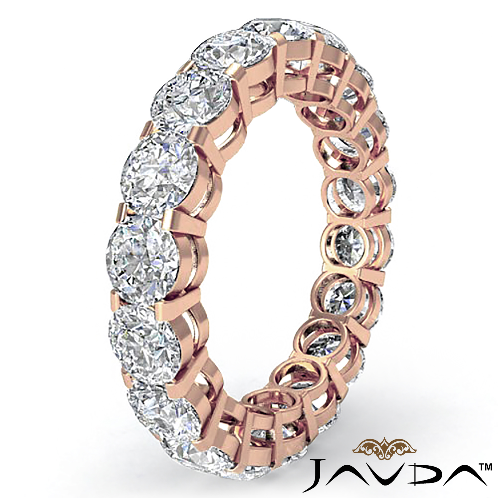 14k Rose Gold Prong Set Women's Diamond Eternity Wedding Band Ring (4.60 mm Wide) with 18 round shaped diamonds weighing . (3.6Ct. tw.)