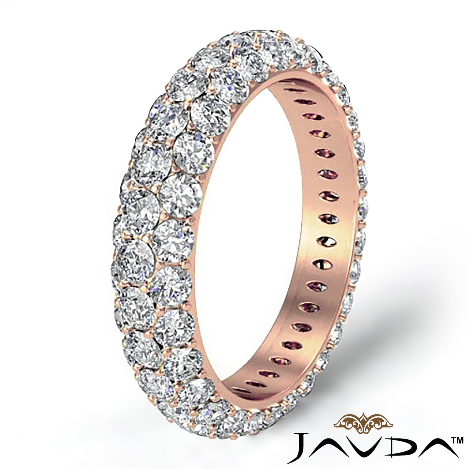 3 Row Round Diamond Engagement Women's Eternity Wedding Band 18k Rose Gold (2.55Ct. tw.)