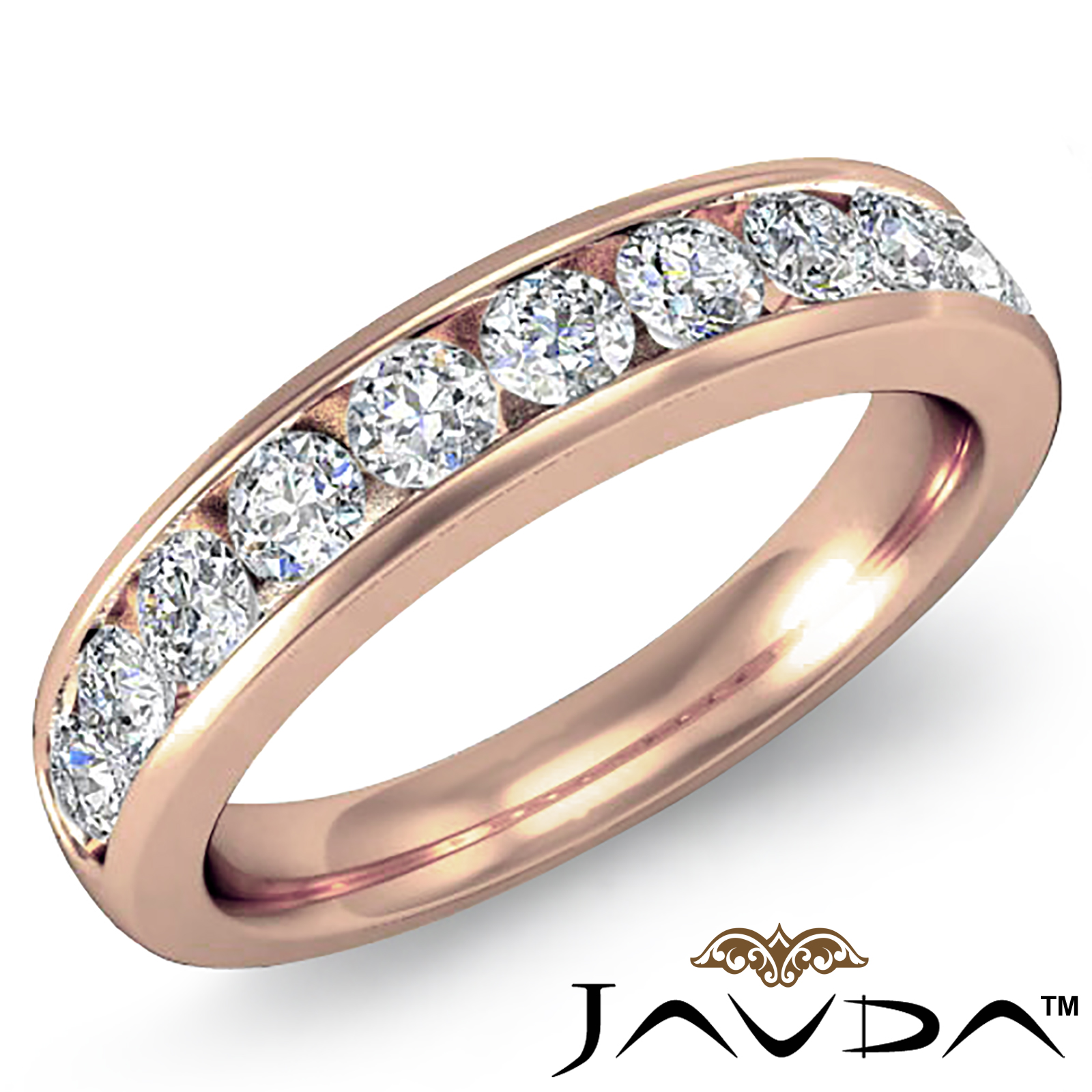 Diamond Women's Half Wedding Band 18k Rose Gold Round Channel Setting Ring (1Ct. tw.)