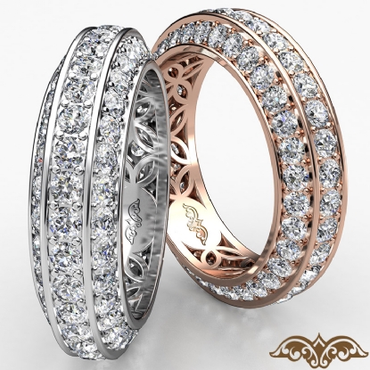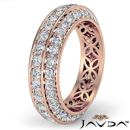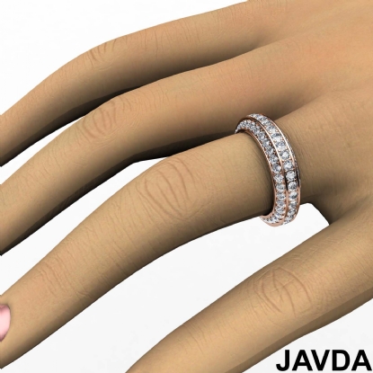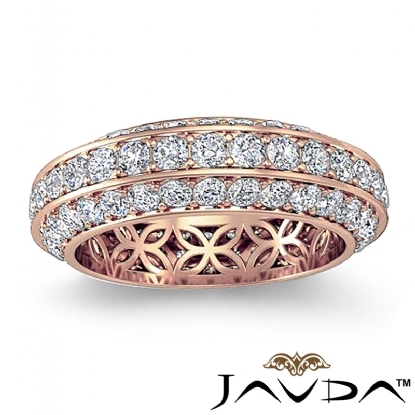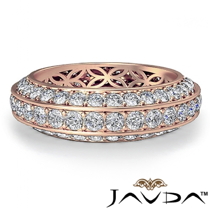Trio Pave Round Diamond Wedding Womens Eternity Band 18k Rose Gold (1.75Ct. tw.)