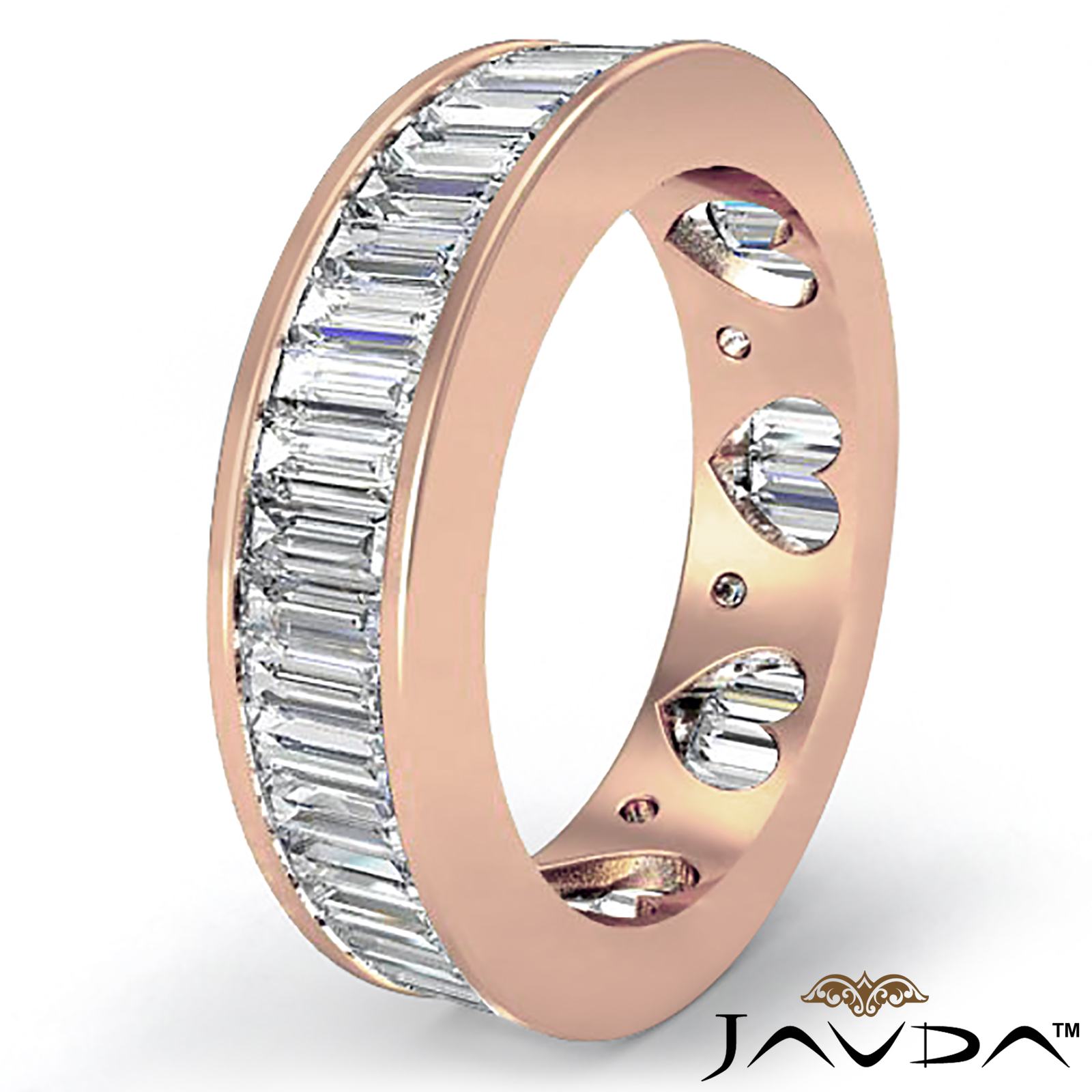 Baguette Diamond Channel Set Heart Eternity Wedding Ring Band made in 18k Rose Gold. (3.5Ct. tw.)