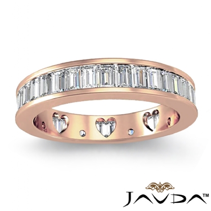 Baguette Diamond Women's Wedding Ring Heart Eternity Band 18k Rose Gold (2.1Ct. tw.)