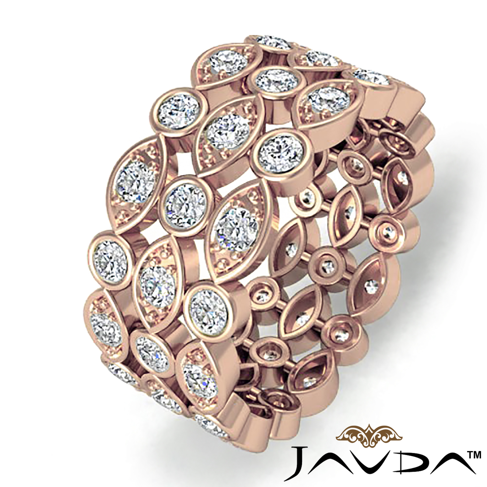 Pave Bezel Diamond Women's Anniversary Eternity Band 18k Rose Gold 8.7mm Ring (1.3Ct. tw.)