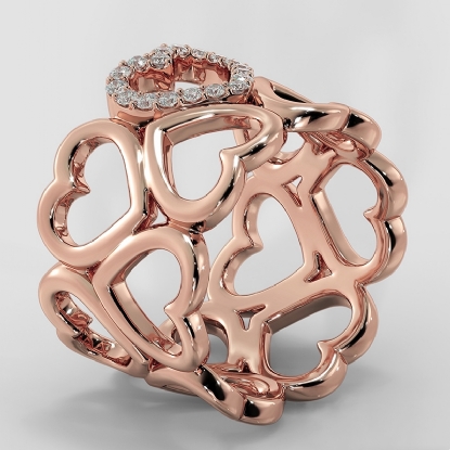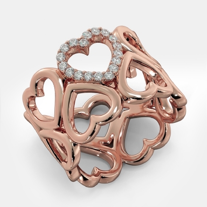 Round Diamond Unique Women Engagement & Anniversary Solid Heart Ring crafted in 18k Rose Gold. Diamonds are set in U Cut Prong Setting. (0.15Ct. tw.)