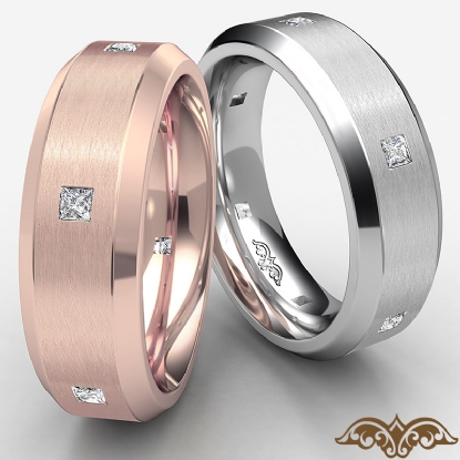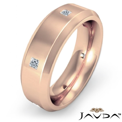 18k Rose Gold Princess Diamond Eternity Men's Wedding Band Beveled Edge (0.25Ct. tw.)