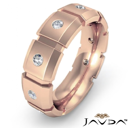 Block Link Round Diamond Men's Eternity Wedding Band in 18k Rose Gold (0.24Ct. tw.)