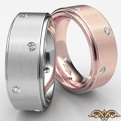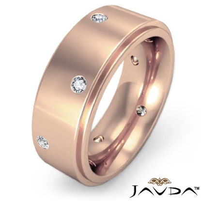Flat Edge Men's Round Bezel Diamond Eternity Wedding Band 18k Rose Gold (0.24Ct. tw.)