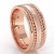 An elegant and stylish rope edge men's diamond eternity wedding band is made from 18k Rose Gold. This ring features polished finish rope edge and center dome with round diamonds in a bezel setting, rope detailing gives it a stylish look.