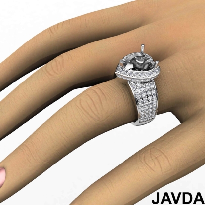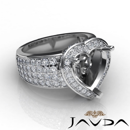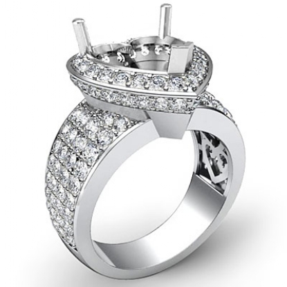 Halo Pave Setting Diamond Engagement Ring Heart Semi Mount 18k W Gold (2Ct. tw.)