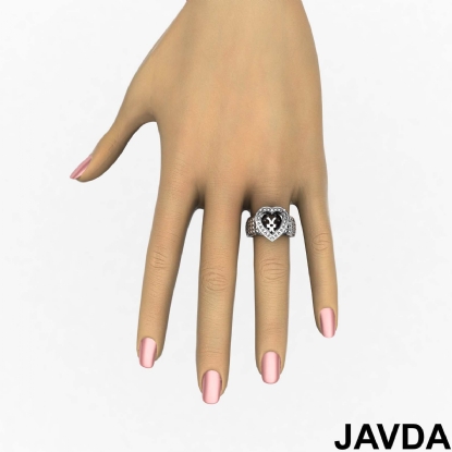 Made with love this 18k Gold White diamond engagement ring is ready to set high standards. The heart semi mount ring features pave set round diamonds in halo & on the spectacular shank. (2Ct. tw.)