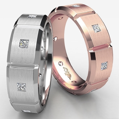 This classic ring designed with princess cut diamonds in a bezel setting. Available in 14k & 18k white gold, yellow gold and rose gold & platinum 950.