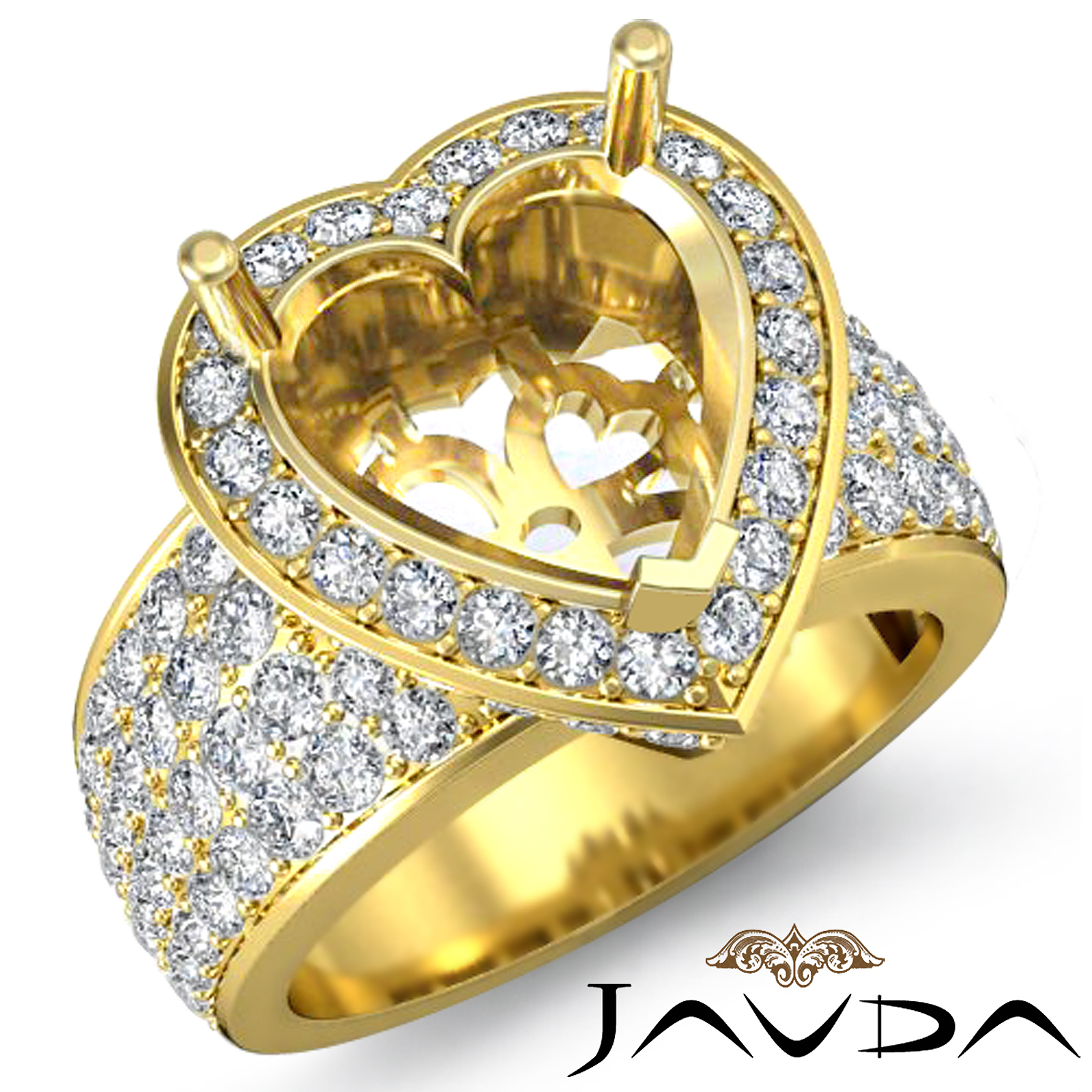 Halo Pave Setting Diamond Engagement Ring Heart Semi Mount 18k Gold (2Ct. tw.)