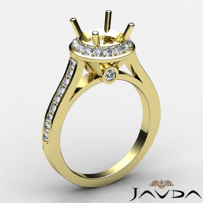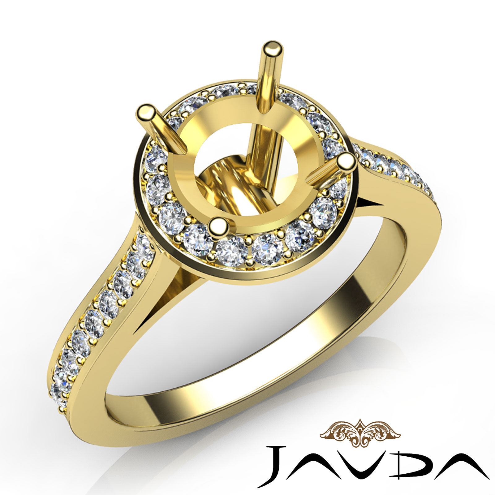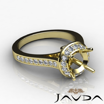 Unlock her heart, with this 14k Gold Yellow diamond engagement ring. This ring showcases a round semi mount halo and a dazzling shank, with pave set round diamonds totaling . (0.7Ct. tw.)