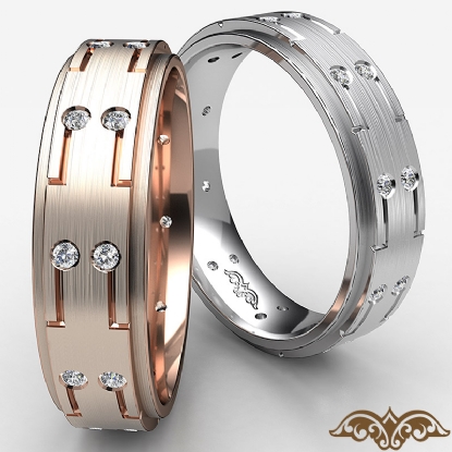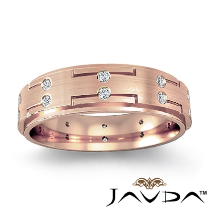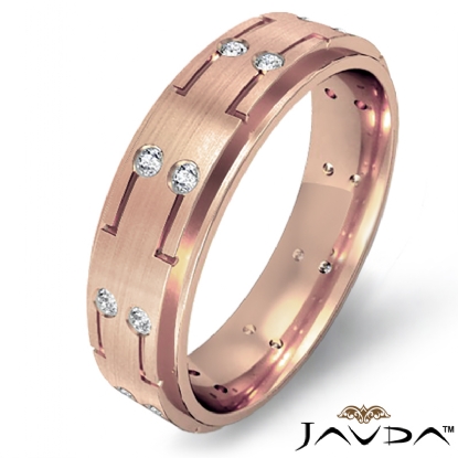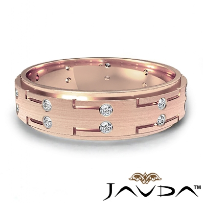 Step Edge Bezel Matte Men's Diamond Eternity Wedding Band 18k Rose Gold (0.16Ct. tw.)