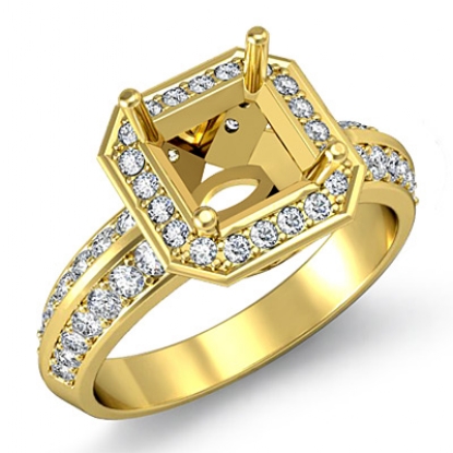 Diamond Engagement Ring Asscher Semi Mount 18k Gold Halo Pave Setting (1Ct. tw.)