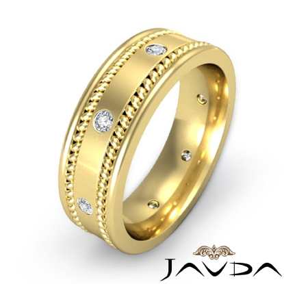 Rope Edges Bezel Diamond Eternity Men's Wedding Band 14k Gold (0.2Ct. tw.)