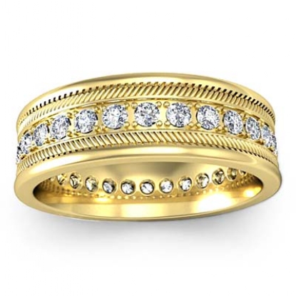 Pave Set Round Edge Diamond Eternity Men's Wedding Band 14k Gold (0.65Ct. tw.)