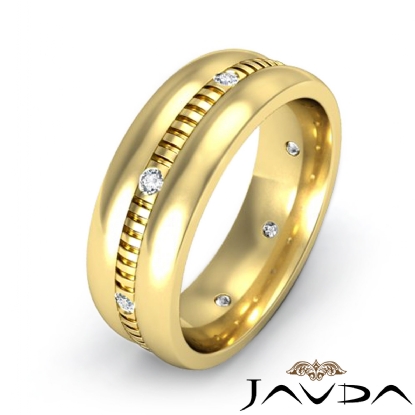 Dome Vertical Cuts Men's Diamond Eternity Wedding Band 18k Gold (0.16Ct. tw.)