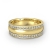 An elegant and stylish men's diamond eternity wedding band is made from 18k Gold Yellow. Featuring yellow gold center dome and round diamonds in a pave setting.