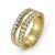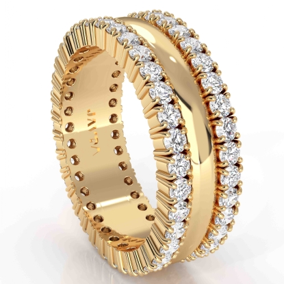 Traditional yet sophisticated prong set men's diamond eternity wedding band is made from solid 18k Gold Yellow. Featuring yellow gold center dome and round diamonds beautifully set with white gold prong detailing gives it a stylish look.