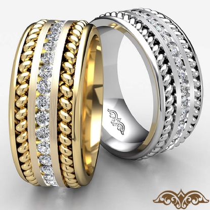 For the everlasting love handmade rope design men's diamond eternity wedding band is crafted in 14k Gold White. This ring features yellow gold rope design and beautifully set with white gold round diamonds in a channel setting.
