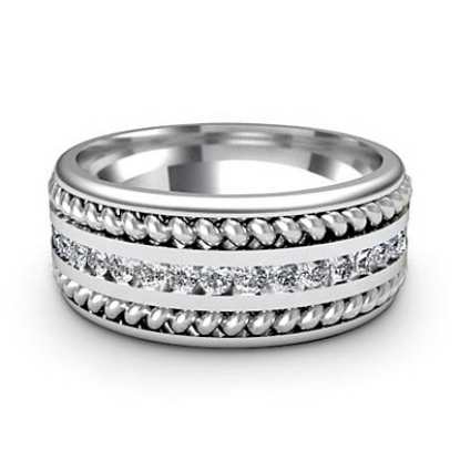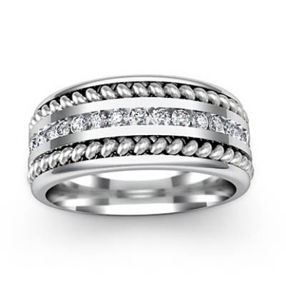 Channel Diamond Rope Design Men's Eternity Wedding Band 14k W Gold (1Ct. tw.)