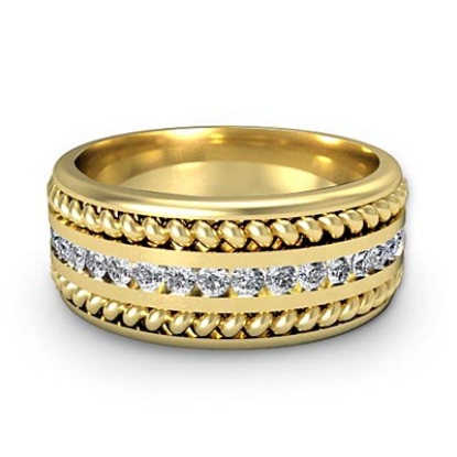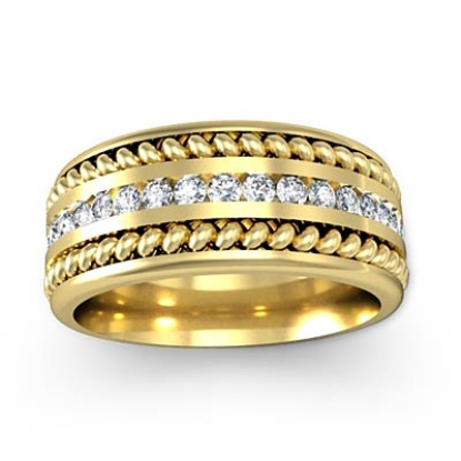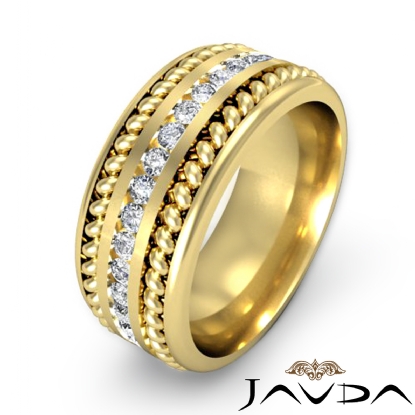 For the everlasting love handmade rope design men's diamond eternity wedding band is crafted in 18k Gold Yellow. This ring features yellow gold rope design and beautifully set with white gold round diamonds in a channel setting.