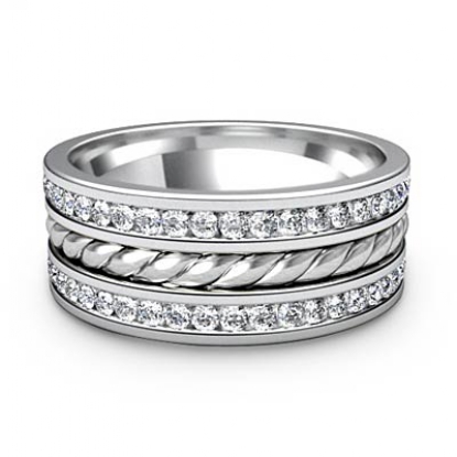 Rope Design Channel Men's Diamond Eternity Wedding Band 18k W Gold (1.75Ct. tw.)