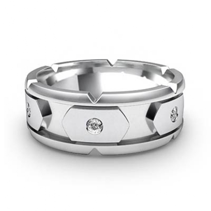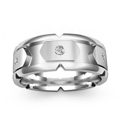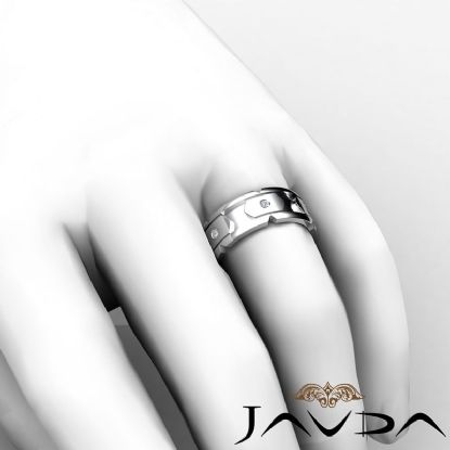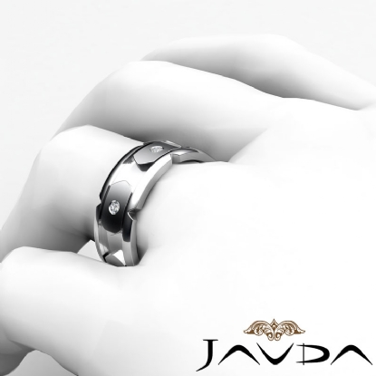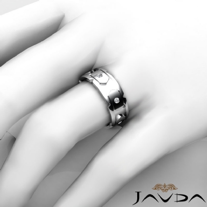 The attractive men's diamond eternity wedding band is made from solid 14k Gold White. This 2 tone ring features polished finished with round diamond set in a bezel setting.