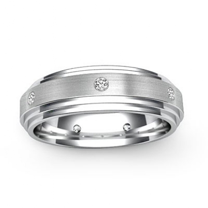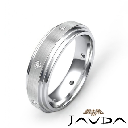 Diamond Eternity Men's Wedding Band Step Edge Brushed 14k W Gold (0.16Ct. tw.)