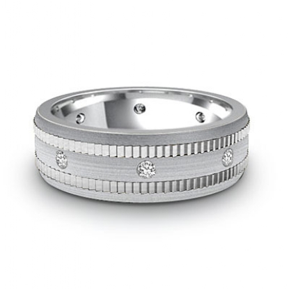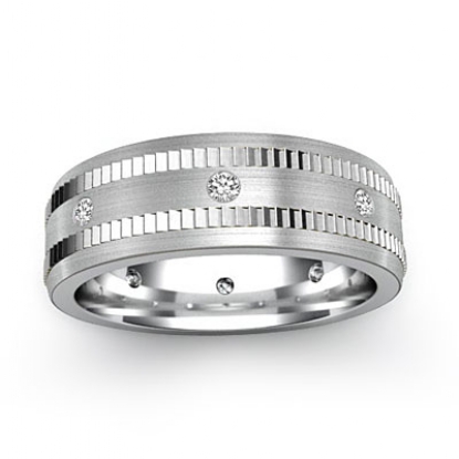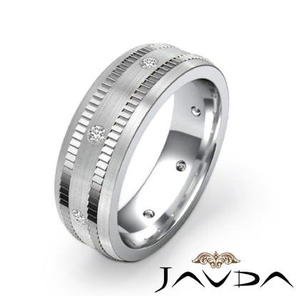 Ribbed Edges Matte Diamond Eternity Men's Wedding Band 14k W Gold (0.16Ct. tw.)