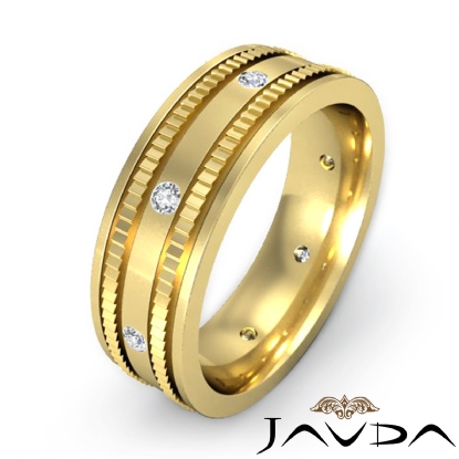 Bezel Men's Diamond Eternity Wedding Band Designer Edges 14k Gold (0.16Ct. tw.)