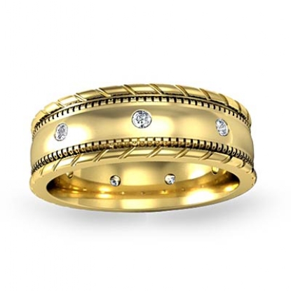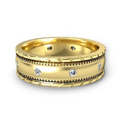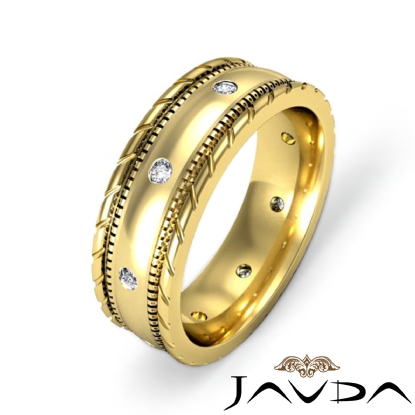 Rope & Milgrain Edge Diamond Men's Eternity Wedding Band 18k Gold (0.16Ct. tw.)