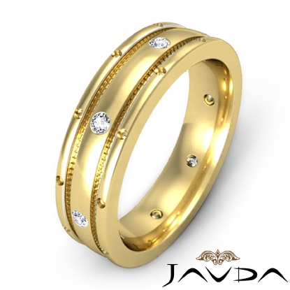 Center Dome Men's Bezel Diamond Eternity Wedding Band 18k Gold (0.16Ct. tw.)
