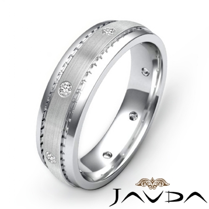 Men's Diamond Eternity Wedding Band Matte Bezel Set 14k W Gold (0.16Ct. tw.)