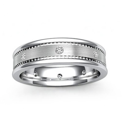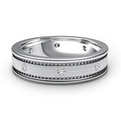 Brushed Bezel Set Men's Diamond Eternity Wedding Band 14k W Gold (0.16Ct. tw.)
